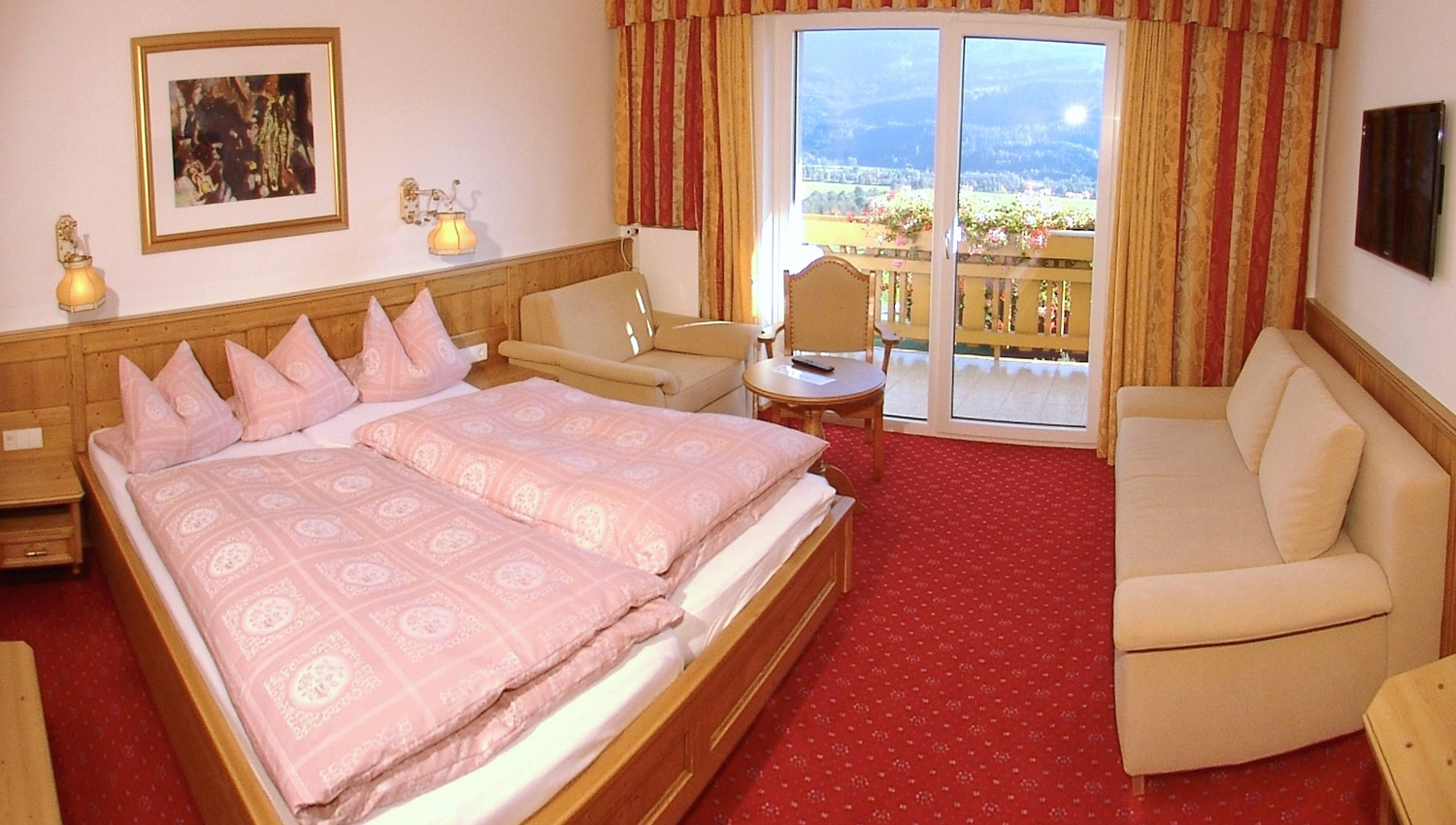 Doppelzimmer im Gästehaus gemütlich eingerichtet mit spektakulärer Aussicht ins Drautal